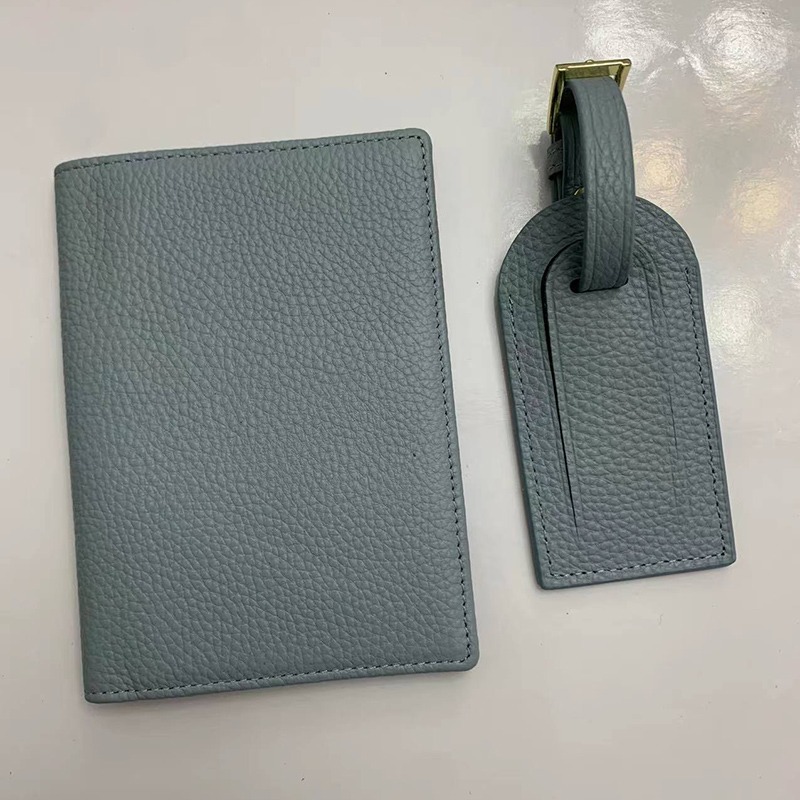 Set Reisepasshülle und Kofferanhänger aus Leder mit Logo bedrucken lassen als Werbeartikel - Reisepasshülle aus Leder mit Kofferanhänger